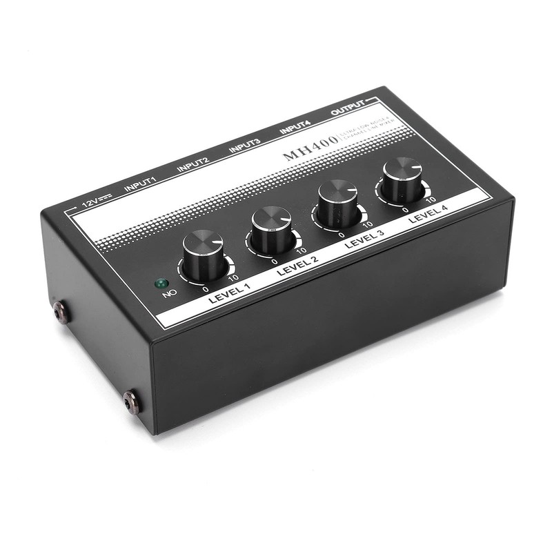 - The ultra‑compact single mixer with 4‑channel input and 1‑channel output line, each input channel can be individually adjusted in volume