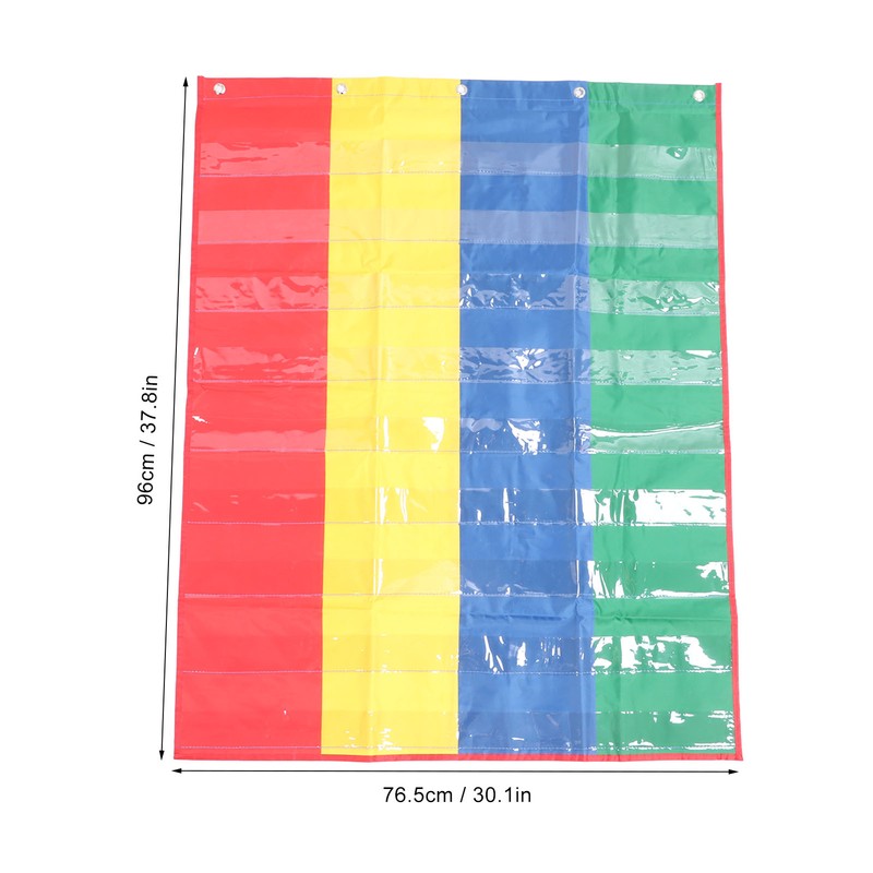 4 Column Hanging Pocket Chart for Classroom Heavy Duty Clear Metal Hook Double Sided Learning Pocket Chart