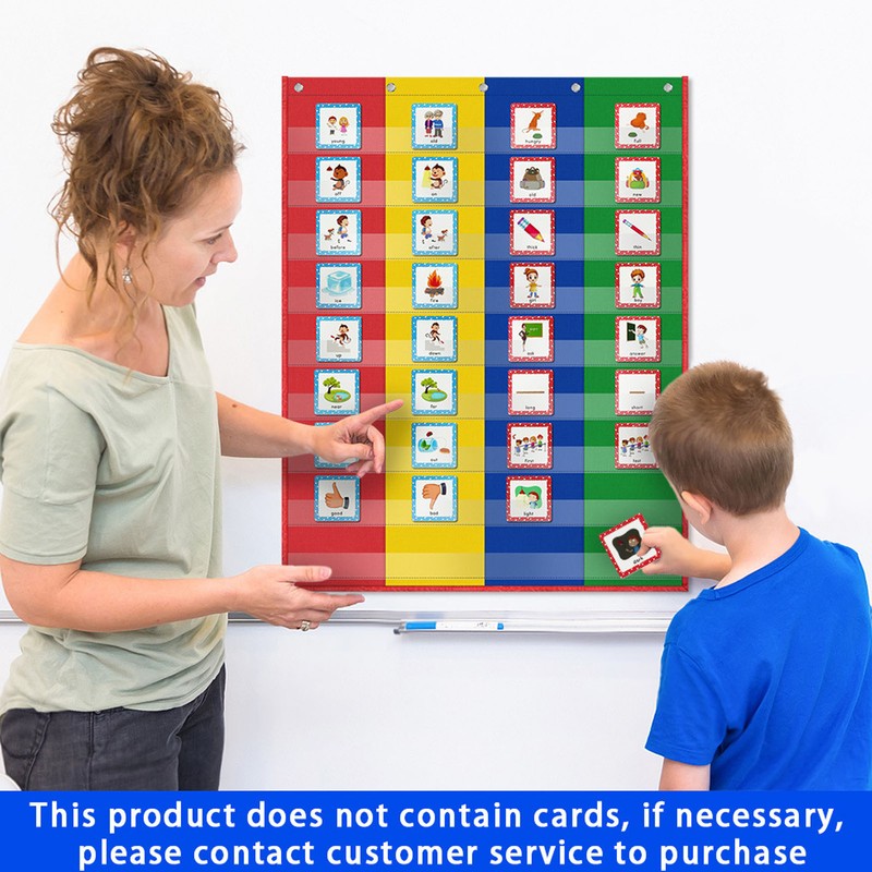 1、VERSATILE LEARNING TOOL: Compact pocket chart is perfect for word classification activities when used with word and sound sorting cards. 2、CLASSROOM ESSENTIAL: Use this multi functional double sided pocket chart to involve students in various hands on learning activities, which is educational. 3、COLORFUL AND ATTRACTIVE: The 4 column pocket chart features four different color coded columns that are visually appealing and engaging for students. 4、ENCOURAGE LEARNING: By using this hanging pocket chart, you can create an interactive and dynamic learning environment that encourages student engagement and participation. 5、DURABLE MATERIAL: Made from fine nylon material, this classroom pocket chart is built to last. The sturdy metal hook keeps the chart upright and prevents it from folding, ensuring long lasting use.
