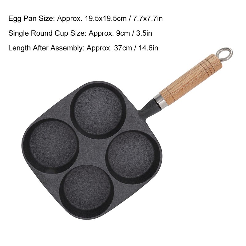4 Cup Egg Frying Pan, With Wooden Handle For Breakfast Pancakes Omelettes, Non Stick Egg Cooker Pan For Home Kitchen
