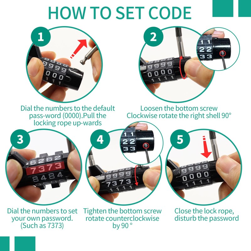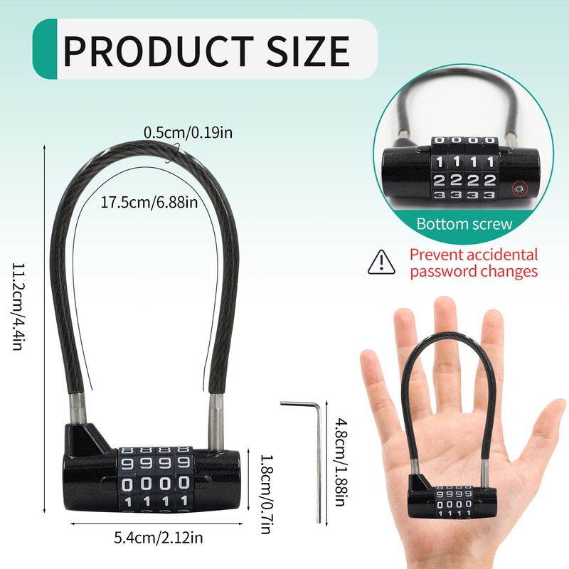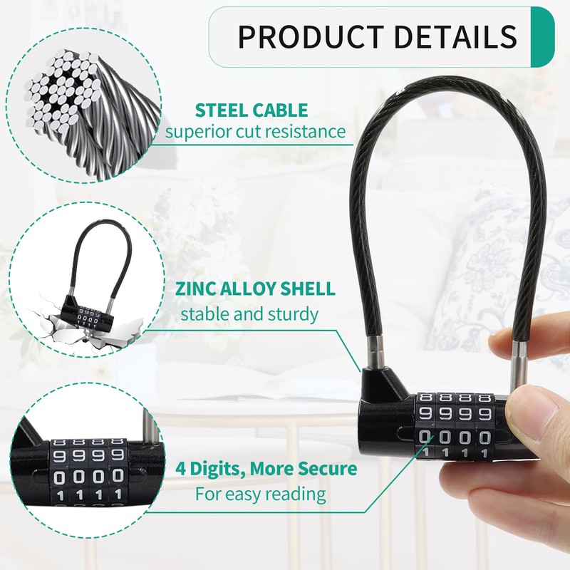 • 【 Easy to Operate 】 Cable pad locks with code is easy to use, following the manual instructions, you can easily reset the combination and protect your valuables (initial combination 0000), setting your own combination is quick and convenient.