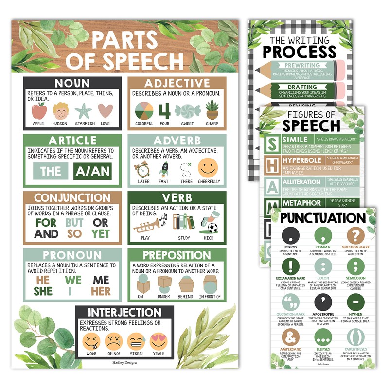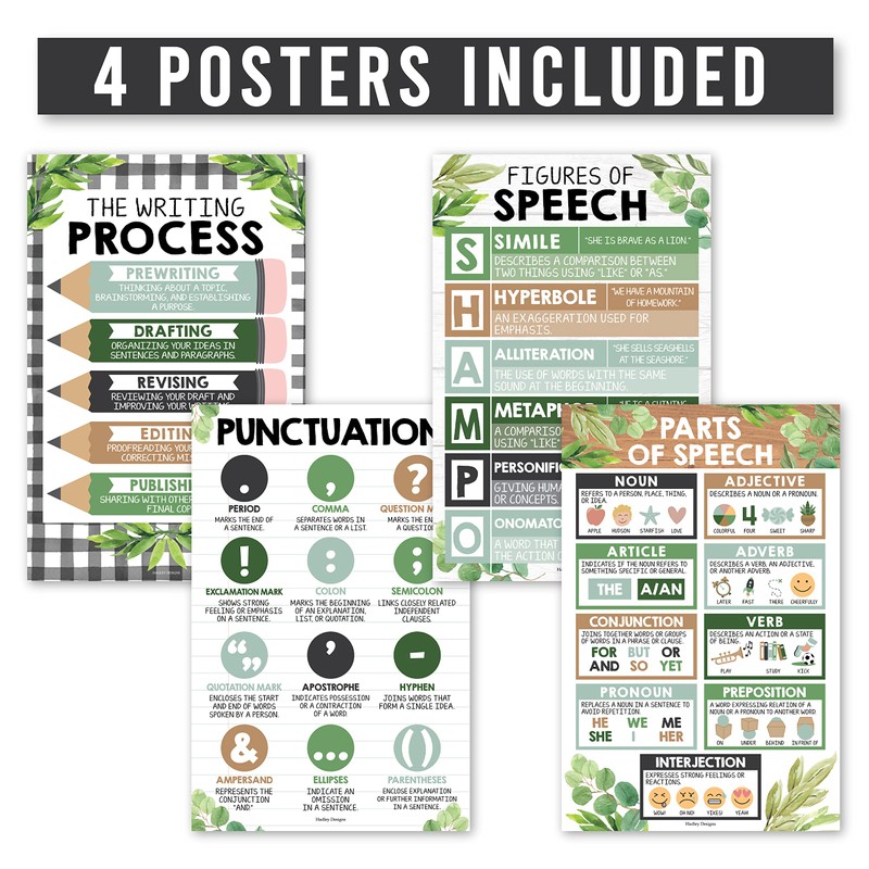 - Capture Attention And Boost Focus; You'll receive 4 laminated 11x17" English classroom posters, so you can grab (and keep) kids' attention with ease; Use these ESL classroom decor language arts posters as a daily reference to make grammar lessons stick