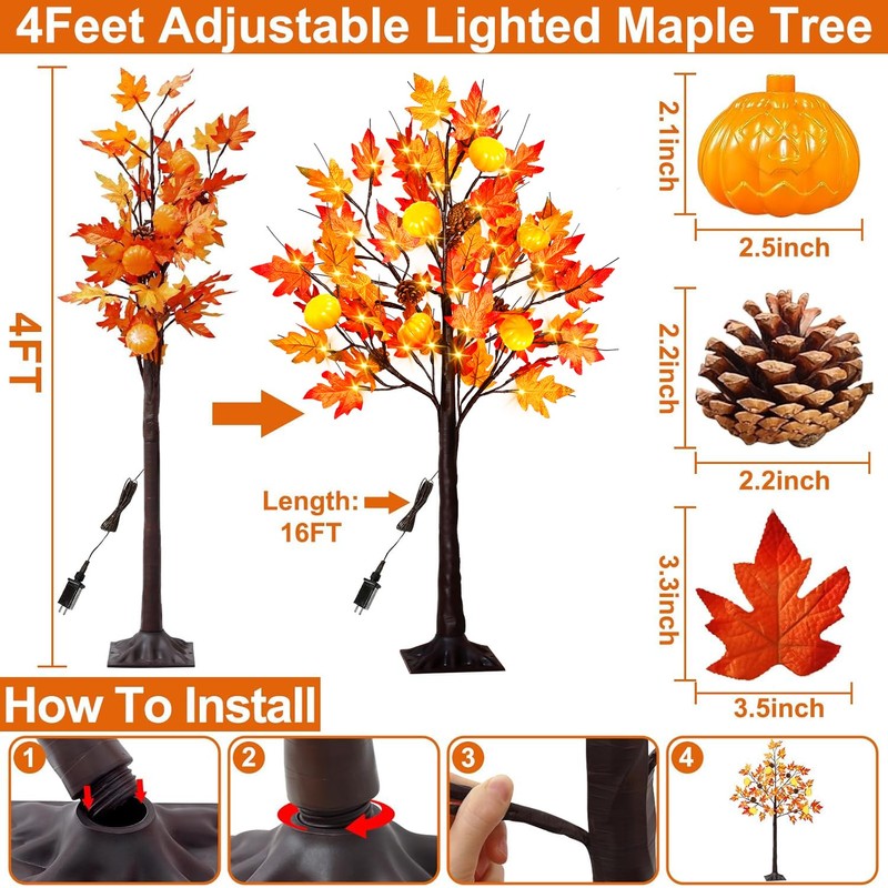 - [ Package Included ] You will receive 4FT fall maple tree with 60 LED lights, Realistic warm maple tree lights can add fall decorations atmosphere, Perfect for fall harvest Thanksgiving centerpiece decorations.