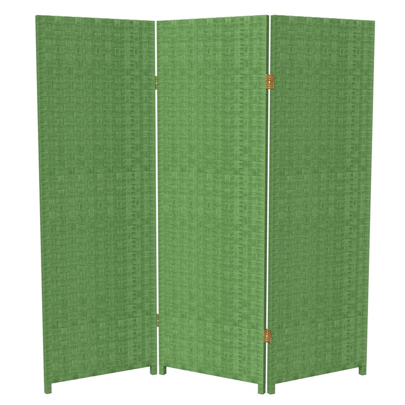 4 ft. Short Woven Fiber Folding Screen - Light Green - 3 Panel