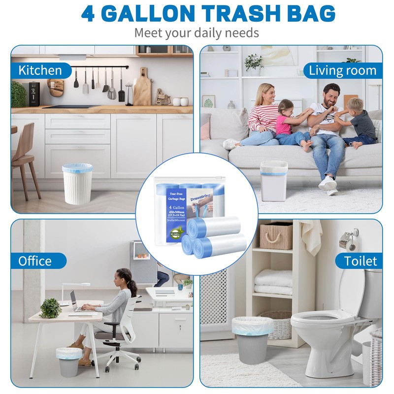 - 【Wide Usage】: The unscented 4 gal small trash can liners are great for general household need. Suitable as office, bedroom, kitchen, and bathroom trash bags. Great small trash can liners to meet your daily cleaning needs.