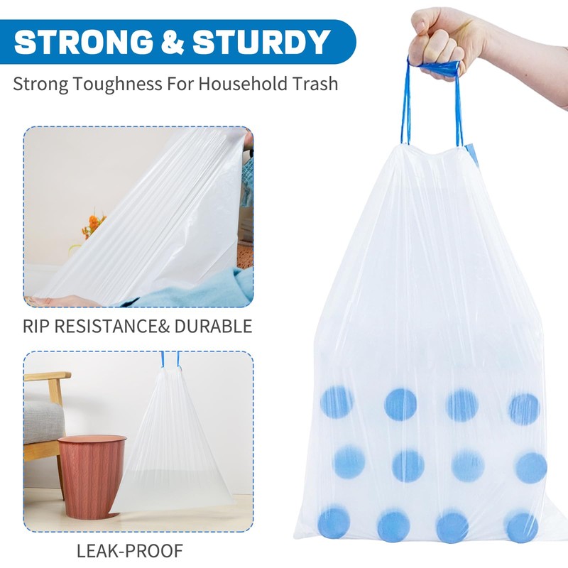 - 【Drawstring Closure Design】: For stink reduction and easy carry, the small trash bags are designed with durable drawstring handle. With a quick cinch, Sturdy drawstring trash bags make packing trash easier