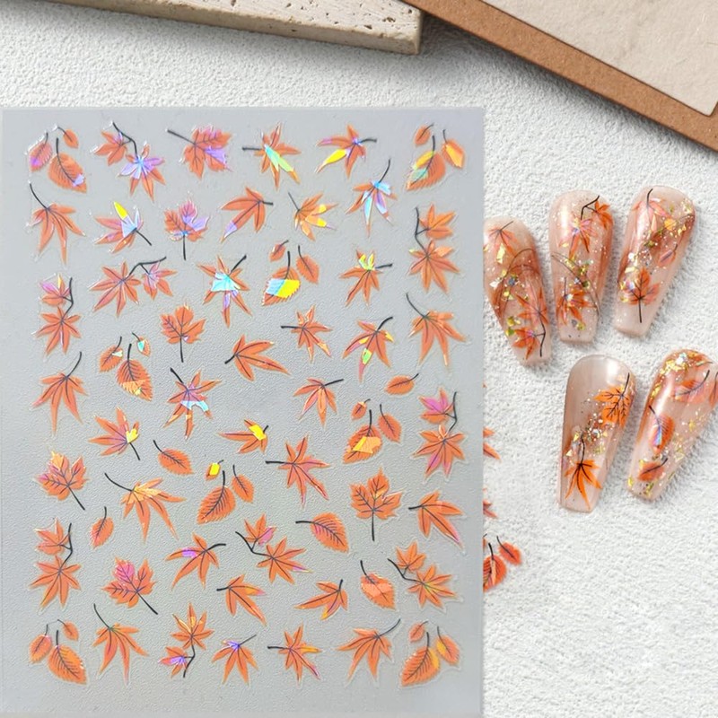 - Paquete: el paquete incluye 4 hojas de pegatinas de uñas de hoja de arce, incluye 2 estilos diferentes