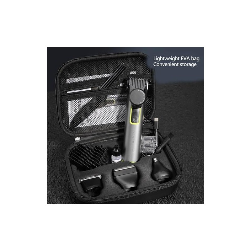 Package List: 1 x Hair Cutter 1 x Nose Hair Cutter Head 1 x Beard Trimming Head 1 x Sideburn Cutting Head 4 x Guide Comb 1 x Comb 1 x Nutritional Oil 1 x USB Charging Cable 1 x Instruction Manual 1 x Cleaning Brush 1 x Storage Bag