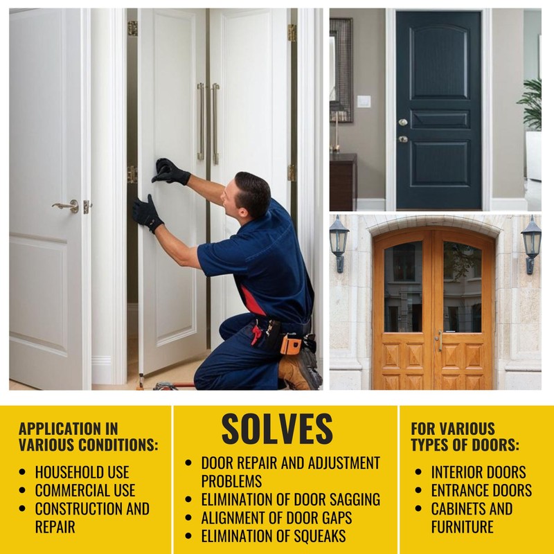 • EFFECTIVE DOOR GAP ADJUSTMENT. Designed as a hinge door adjustment tool, it ensures precise alignment and leveling of doors. Easily eliminating unsightly gaps, this door adjustment tool is perfect for maintaining aesthetics in your residential spaces