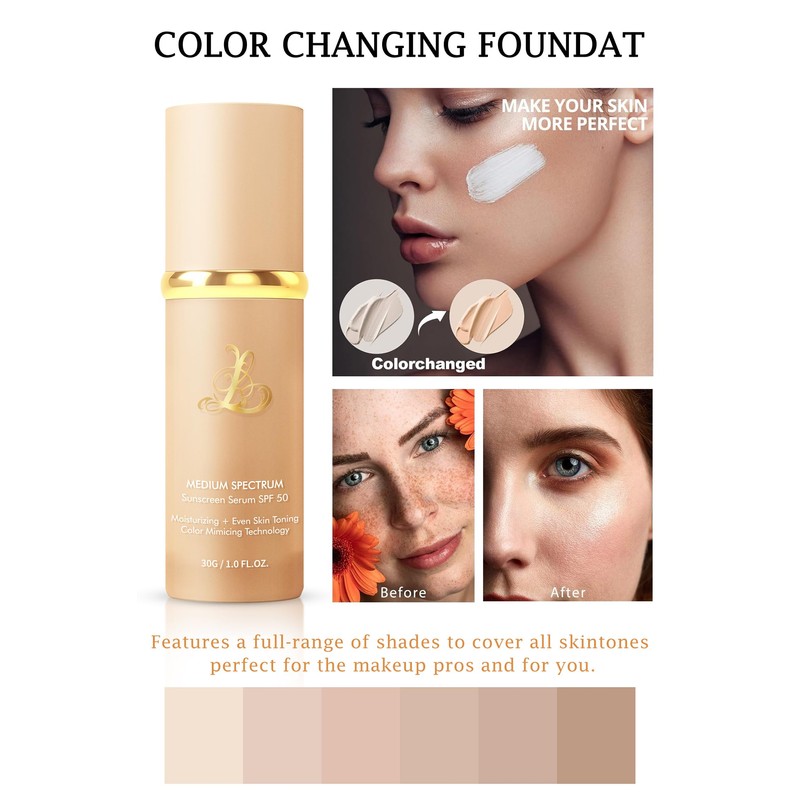 4 in 1 Foundation with SPF 50+【Color Changing】【Light Weight】【Long Lasting】Color Changing Foundation,Medium Spectrum