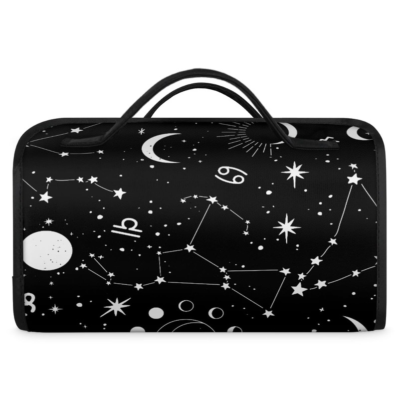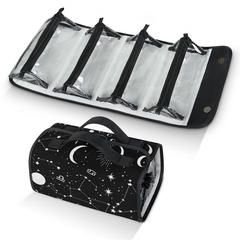 4 In 1 Hanging Toiletry Bag Roll-Up Makeup Bag with 4 Detachable Removable Zipper Clear PVC Pouch, Folding Waterproof Cosmetic Organizer Bag For Travel Gym Camping Grooming Dai(Stars and Moon)