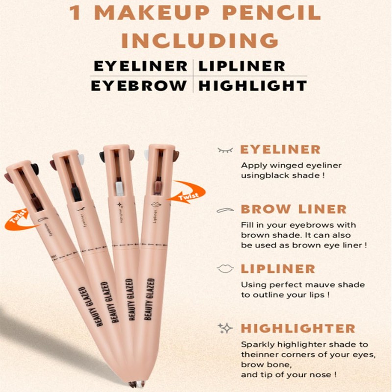 4-in-1 Makeup Pen, Eyeliner, Brow Liner, Lip Liner & Highlighter Pen, Waterproof, Long-Lasting All-in-One Makeup Pen, Eyeliner, Eyebrow Pencil, Lip Liner Pencil and Highlighter (#102)