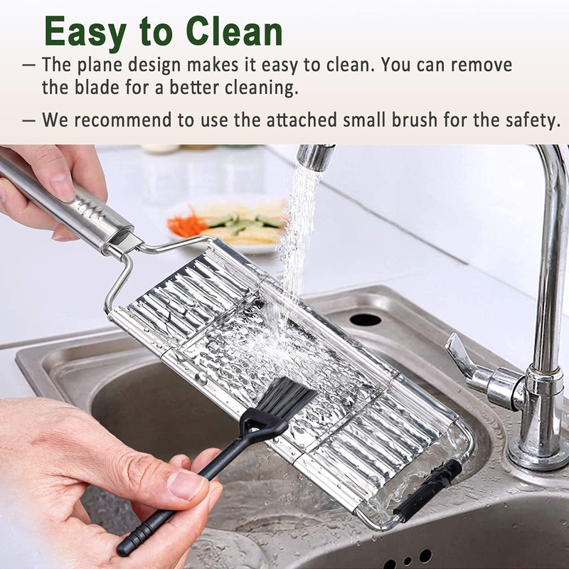 - Food Grade Stainless Steel: Made of heavy-duty stainless steel and ultra-razor-sharp blades with edge and hard texture, this slicer is corrosion and rust-resistant, more stable and durable than the ordinary plastic slicer. Brilliant and well made, easy to use and fast chopping with very sharp blades.