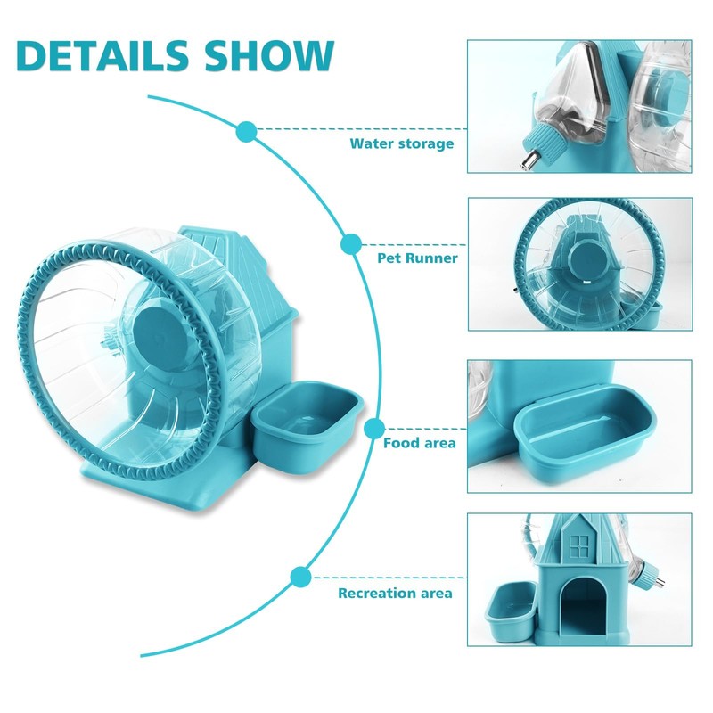 - Multi-functional Design: Silent spinner wheel has a removable food bowl, water bottle cap design for easy water refilling, and a small house shelter with a solid base to keep your pet happy and safe to play