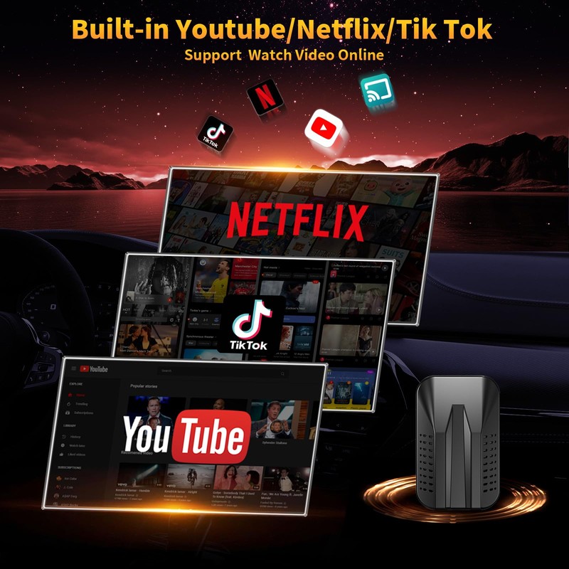 Wireless CarPlay & Android Auto Adapter is Compatible with N-etflix/YOuTube/TIK Tok