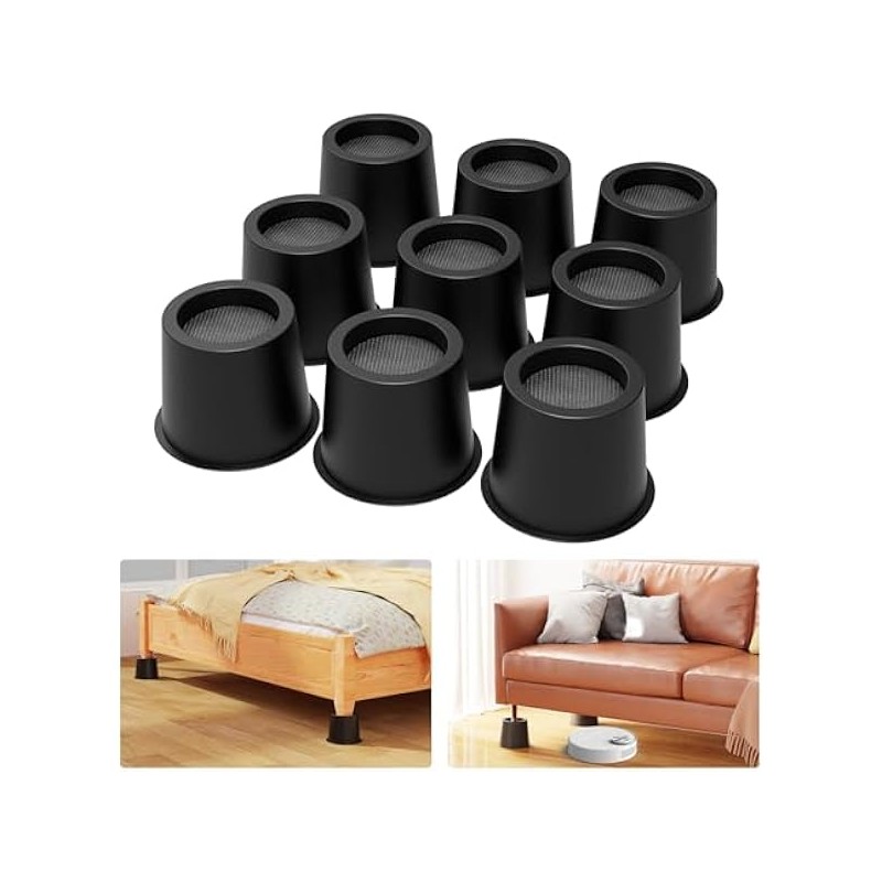 4 inch Bed Risers Heavy Duty, Adjustable Furniture Risers for Bed, Sofa, Table, Chair, Support up to 1500 Lbs (Set of 9, Black)