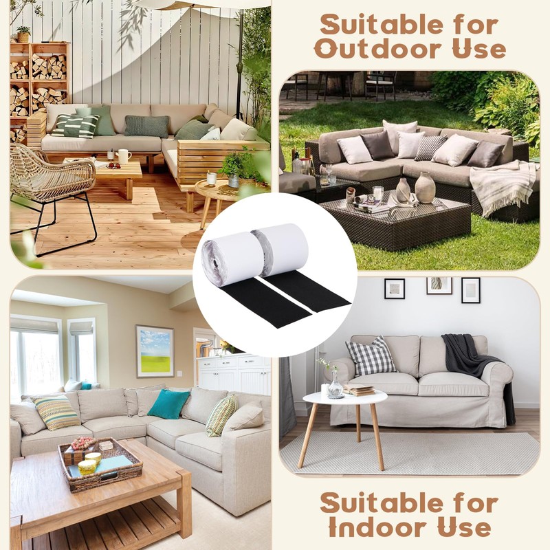 • Keep Sofa Cushions from Sliding: Our hook and loop tape is designed to stop sofa cushions from sliding. This set contains one adhesive hook roll and one sticky loop roll. Each roll measures 4 inches wide and 16.5 feet long. It firmly attaches the cushion, enhancing the sofa's comfort for a relaxing time.