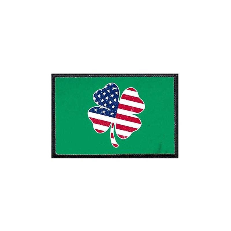 4 Leaf Clover - US Flag Morale Patch | Hook and Loop Attach for Hats, Jeans, Vest, Coat | 2x3 in | by Pull Patch