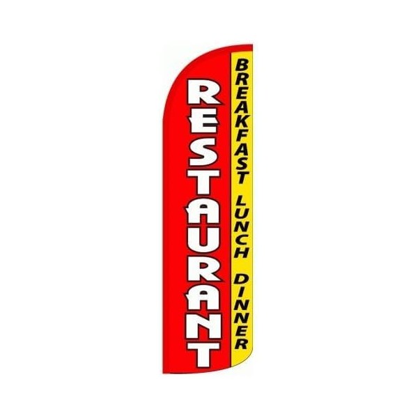 - 4 Less Co RESTAURANT BREAKFAST LUNCH DINNER Windless Swooper Flag Feather Banner Sign 3x11.5 ft Tall (Flag Only, Pole and Spike Not Included) rq
