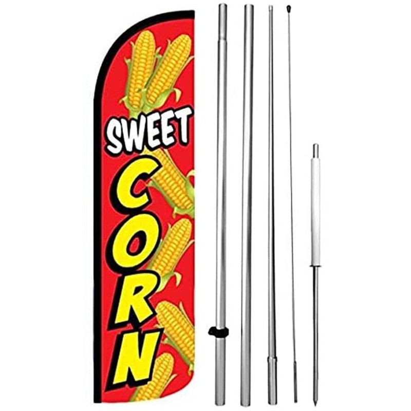 - SWEET CORN Windless Swooper Flag Kit Feather Banner 15 ft Tall Large Pole Spike Sign rq-h