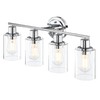 - 【Stylish Chrome 4-Light Wall Sconce Light】 This 4-Light chrome wall light fixture with chrome finish could perfectly blends to various decor styles. The 4 bulb chrome wall lantern is a great addition to any modern or home decor! This 4-bulb wall light with a round bracket design, consisting of chrome metal frame and clear glass shade. The 4 bulb chrome wall sconce is ideal for updating your bathroom, vanity, bedroom or kitchen.