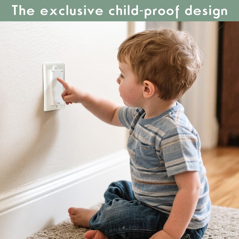 - 【EXCLUSIVE DESIGN】: This light switch cover guard features a unique lock mechanism that is easy for adults to operate while remaining challenging for toddlers. It allows you to cover the switch whether it is in the on or off position, offering peace of mind.