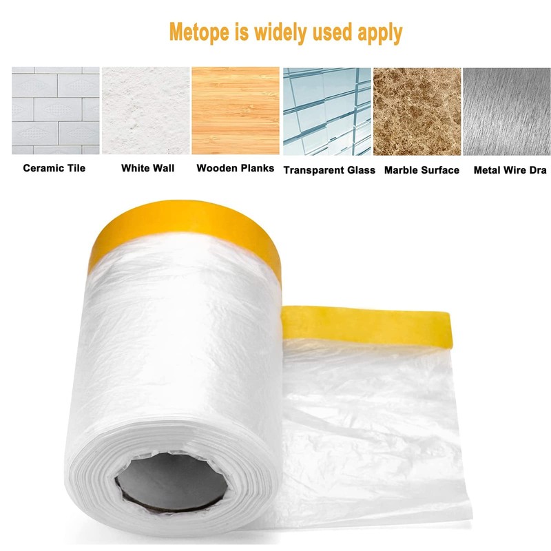 - Material: adhesive tape is a painter's masking tape made of high-quality adhesive tape and PE film, which is self-adhesive, soft and tear-resistant. PE film has strong electrostatic adsorption and can quickly absorb paint. Effectively prevents the penetration of stains, varnishes and paints.
