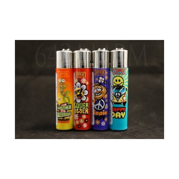 4 New Refillable Original Clipper Lighters Hippi Design by Clipper