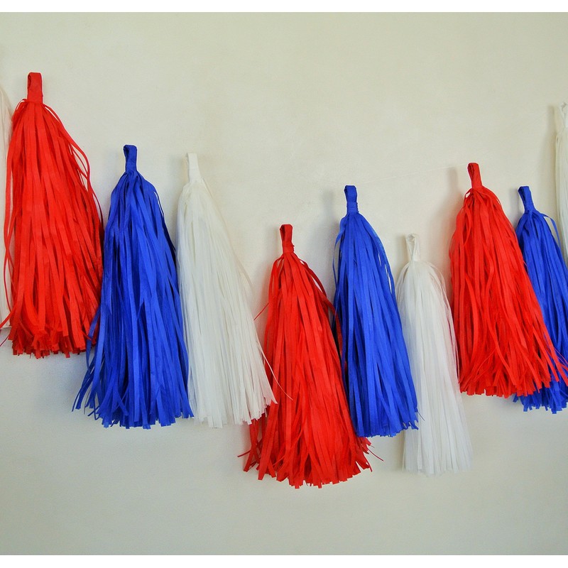 4 of July Tissue Tassels 10 Tassels 8 Feet Strings of Tassels