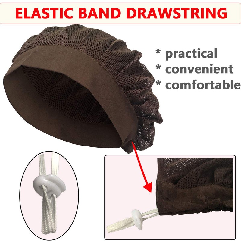 4 or 8 Pack Chef Hat Kitchen Cooking Chef Cap Adjustable Food Service Hair Nets Reusable Washable Mesh Bouffant Beanie, 4 Pack-drawstring Black+coffee+white+dark Blue, One Size
