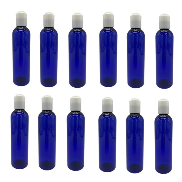 - Package Include: 12 Pack 4 oz each Blue Plastic Bottles with White Press Down Disc Cap