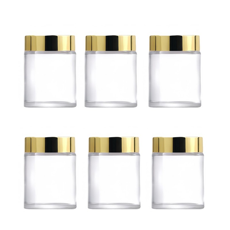 - These cream jars made of glass and plastic gold lids,durable and sturdy.