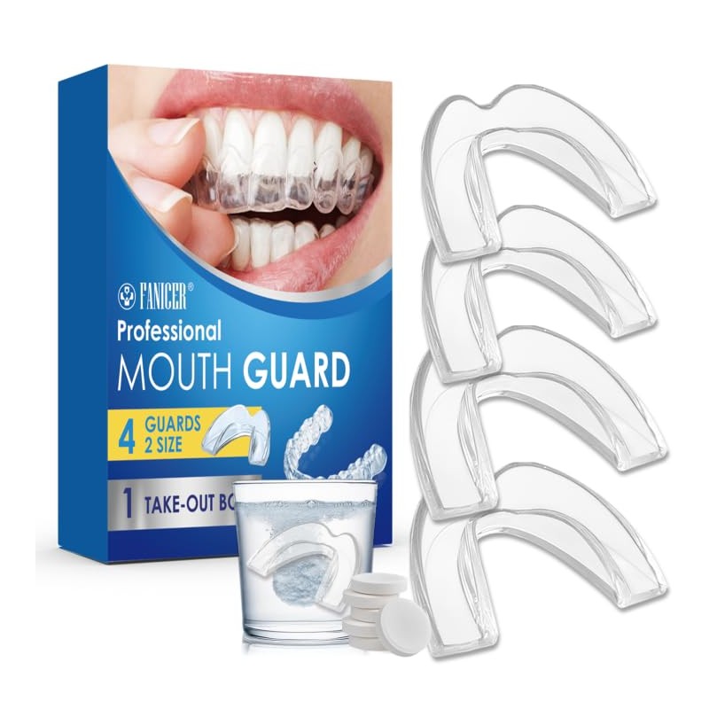 4-Pack 2 Sizes Grinding Splint for Night Night Protection for Teeth, Bite Splint, Against Bruxism and Teeth Grinding, Transparent Braces for Peaceful Sleep, Includes Cleaning Tablets 12 Tablets