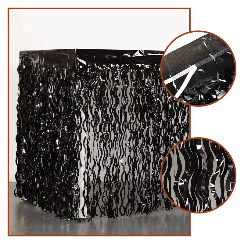 - [EASY TO USE]: Each Wavy Table Skirt comes with self-adhesive tape on the top, which can be easily peeled off and fixed on the table - The double layer for better effect. The smooth tinsel fringes are not easy to get tangled. If they get tangled, just shake them off easily.