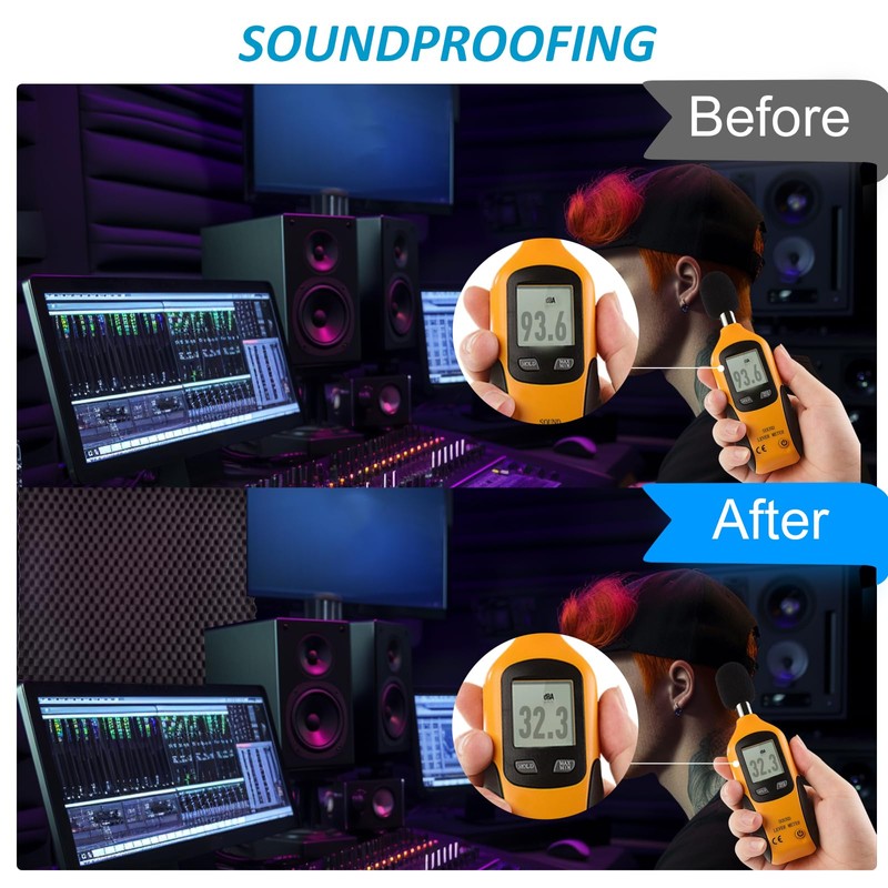 - Versatile - Our noise reduction panels are made of flame-retardant, odorless materials and are suitable for use in recording studios, music studios, home theaters, private rooms in karaoke rooms, daycare centers, laundry rooms, and other locations where high audio processing is required