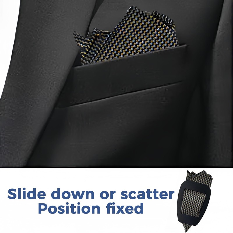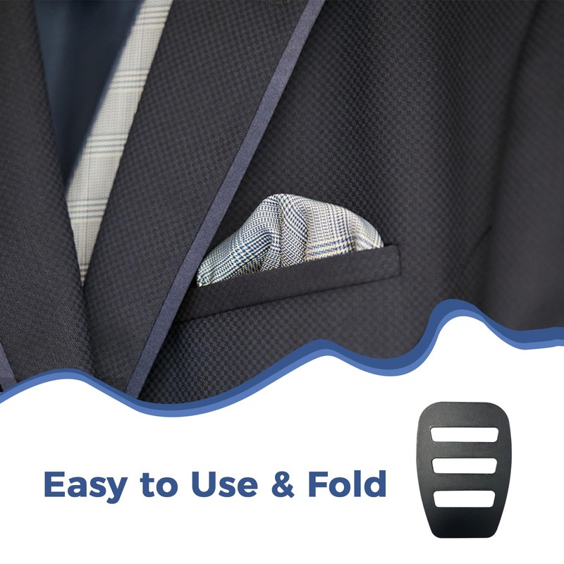 This innovative plastic support piece holds your pocket handkerchief securely in place, ensuring it stays perfectly positioned all day long.