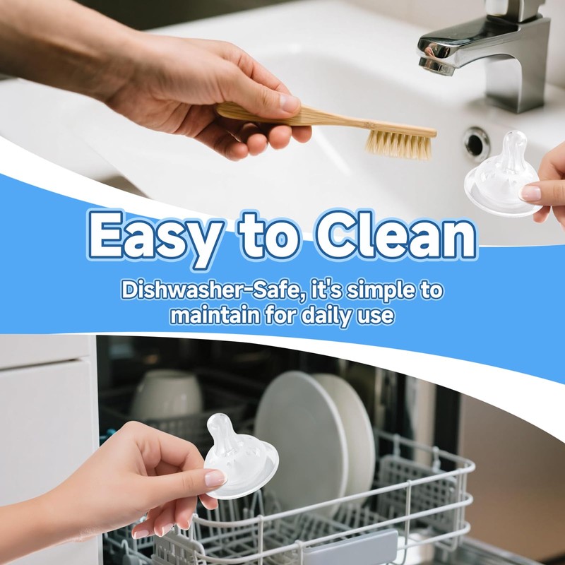 - Easy to Clean and Dishwasher Safe: Made from durable silicone, these bottle nipples are easy to clean by hand or in the dishwasher, helping busy parents save time while ensuring hygiene and safety for their little ones