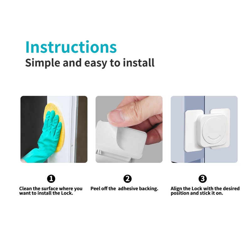 - 4 Pack Refrigerator Lock - Includes sticky self-adhesive pads. No tools needed, and won't damage your fridge. For best results, use 12 hours after adhesive tape is applied.