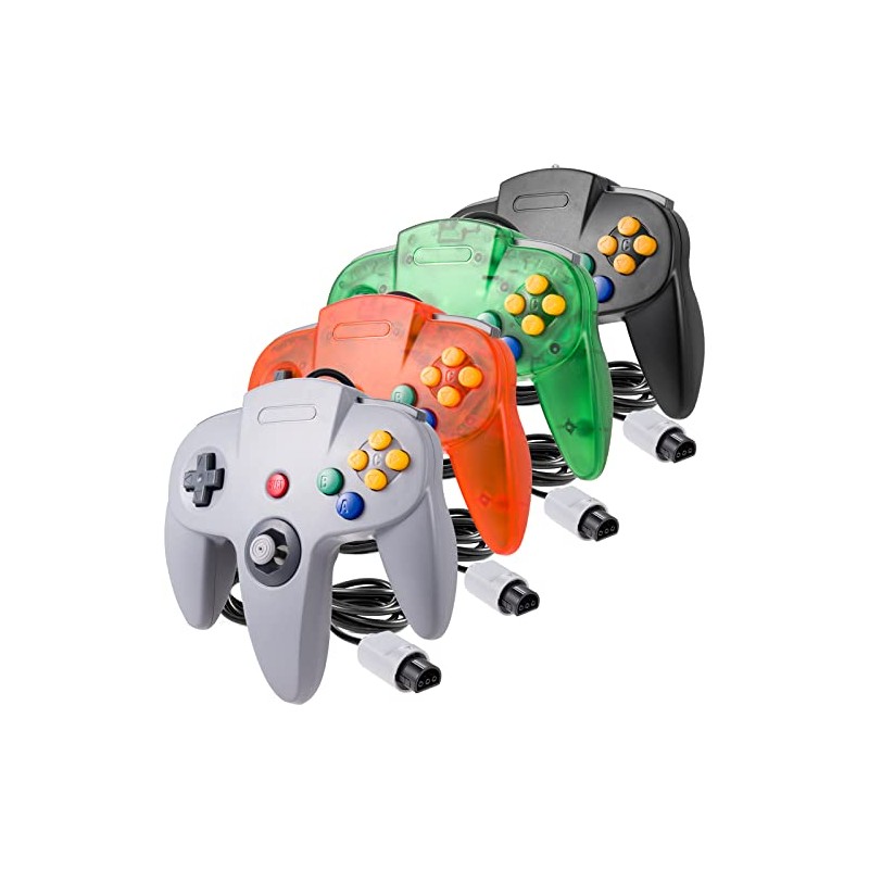 4 Pack Classic 64 Controller, suily Game pad Joystick for 64 - Plug & Play (Non PC USB Version) (Black/Gray/Clear Orange/Clear Green)