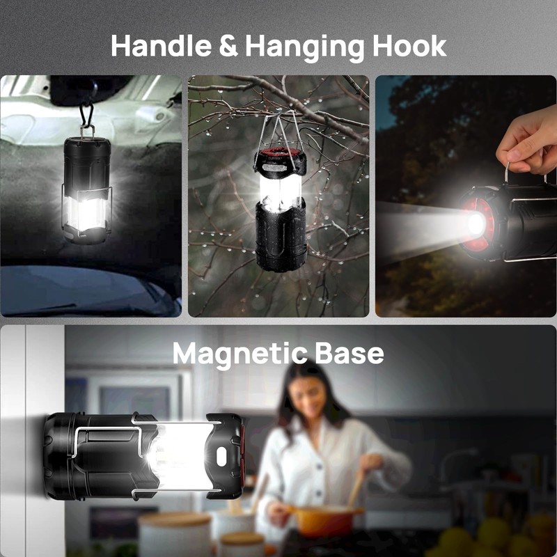 4 Pack Collapsible LED Camping Lantern, Consciot USB C Rechargeable and Battery Powered 2-in-1 Emergency Light with Flashlight and Magnetic Base, Power Outages Hurricane Supplies Survival Kits