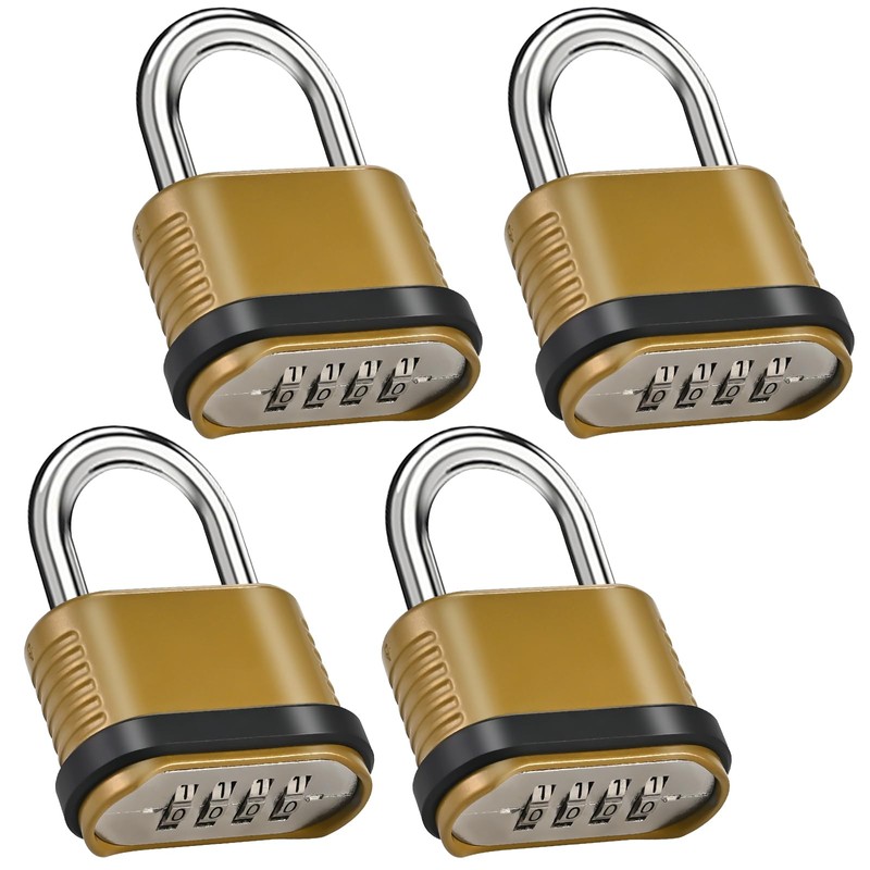 4 Pack Combination Lock | 4-Digit Heavy Duty Combo Lock - 26.5mm Outdoor Waterproof Combination Padlock for Outdoor Fence, Locker, Sheds, Gym, Gate Hasps - Golden (4pcs, Short Shackle)