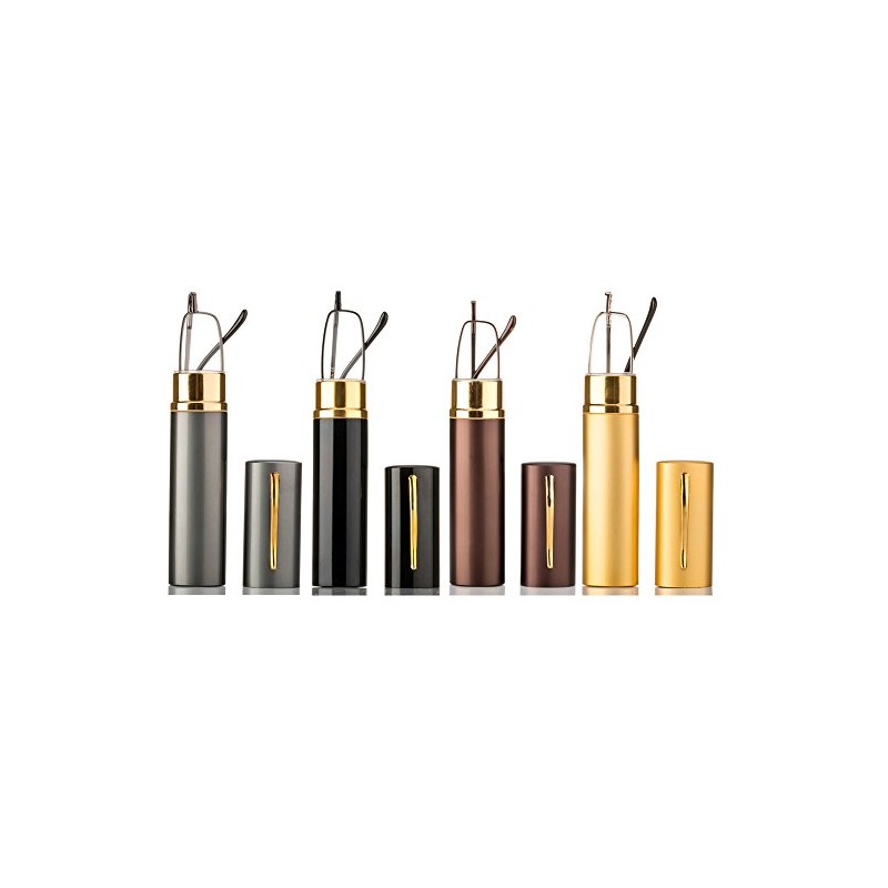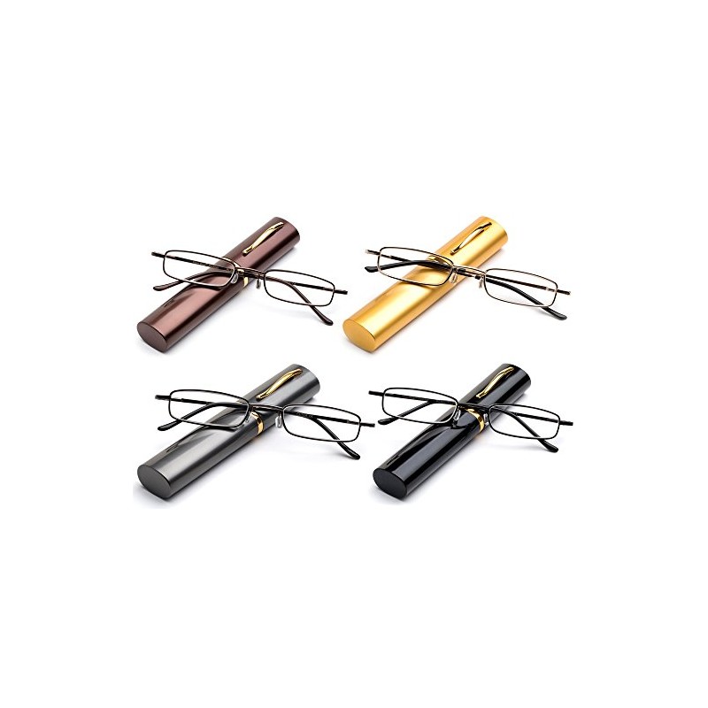 4 Pack Compact Reading Glasses in Aluminum Case - Spring Hinged Metal Frames, Portable Lightweight, 3.25 Magnification