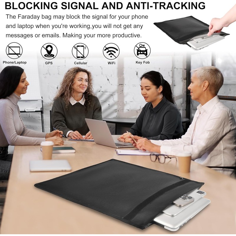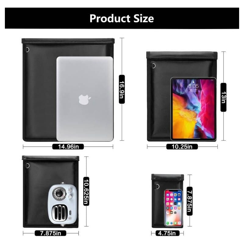 - 【Comprehensive Protection】Our 4-pack Faraday kit includes a laptop faraday bag (16.9'x14.96')*1, tablet faraday bag (13'x 10.25')*1 radio faraday bag (10.63'x 7.87')*1, cell phone faraday bag(7.87'x 4.75") . Faraday cage provide signal shielding and protection for your car keys, cash, passport, phone, laptop, bluetooth, GPS etc.