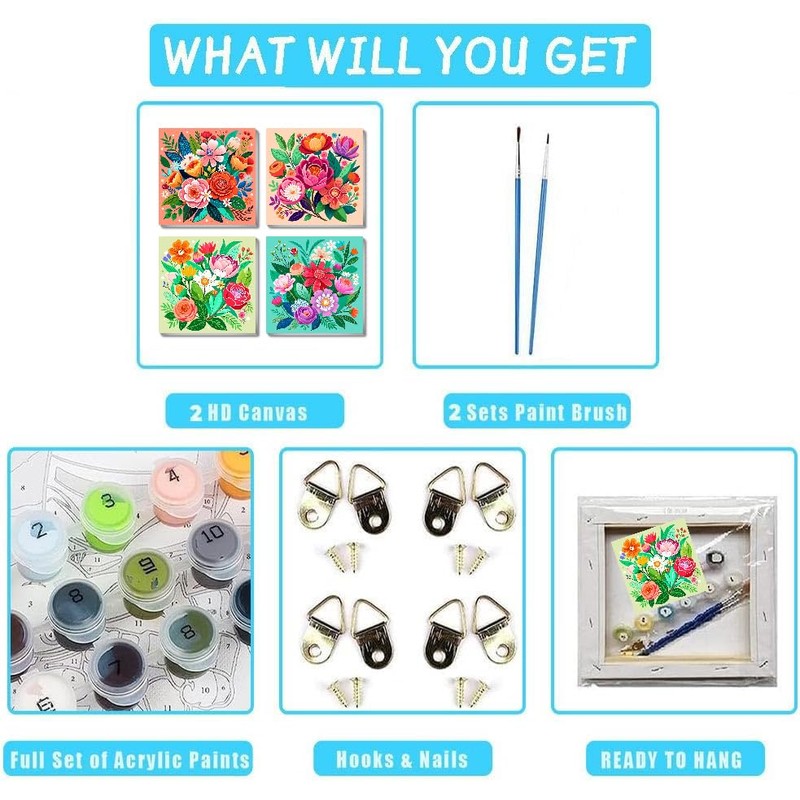 4 Pack Flowers Paint by Numbers Kit for Adults Beginners Framed - DIY Flowers Adults Paint by Numbers Kits on Canvas with Frame, Small Easy Acrylic Oil Painting Perfect for Home Decor 8 X 8 Inch