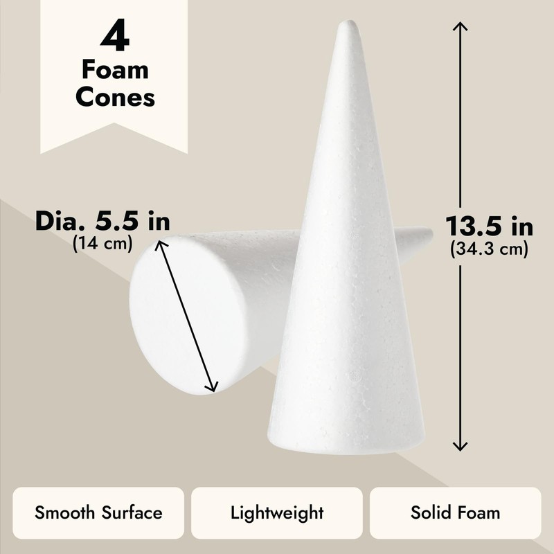 - What's Included: Includes 4 white craft foam cones to ensure you always have one on hand for your next craft project