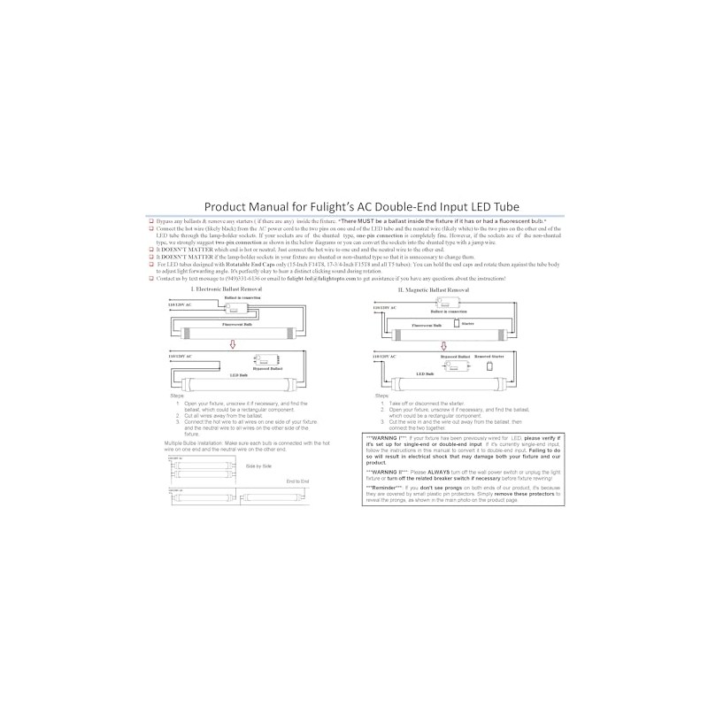 ****Please read the manual and description carefully before making any purchasing. We assume that each buyer has read them and known how to wire this type LED tube lamp ! ****