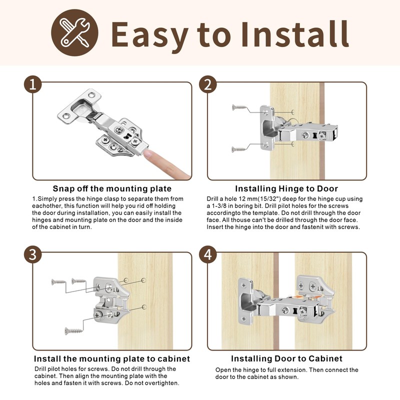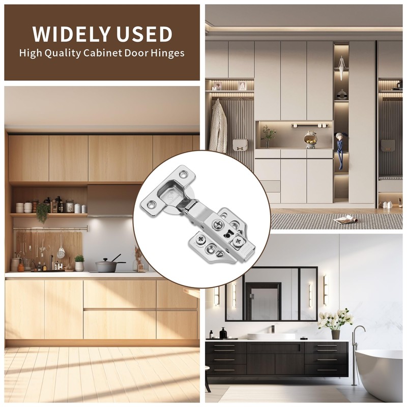 4 Pack Full Overlay Soft Close Cabinet Hinges 105° Frameless 3 Way Adjustable Soft Close Hinges for Cabinet Doors Kitchen Cabinet Door Hinges with Screws