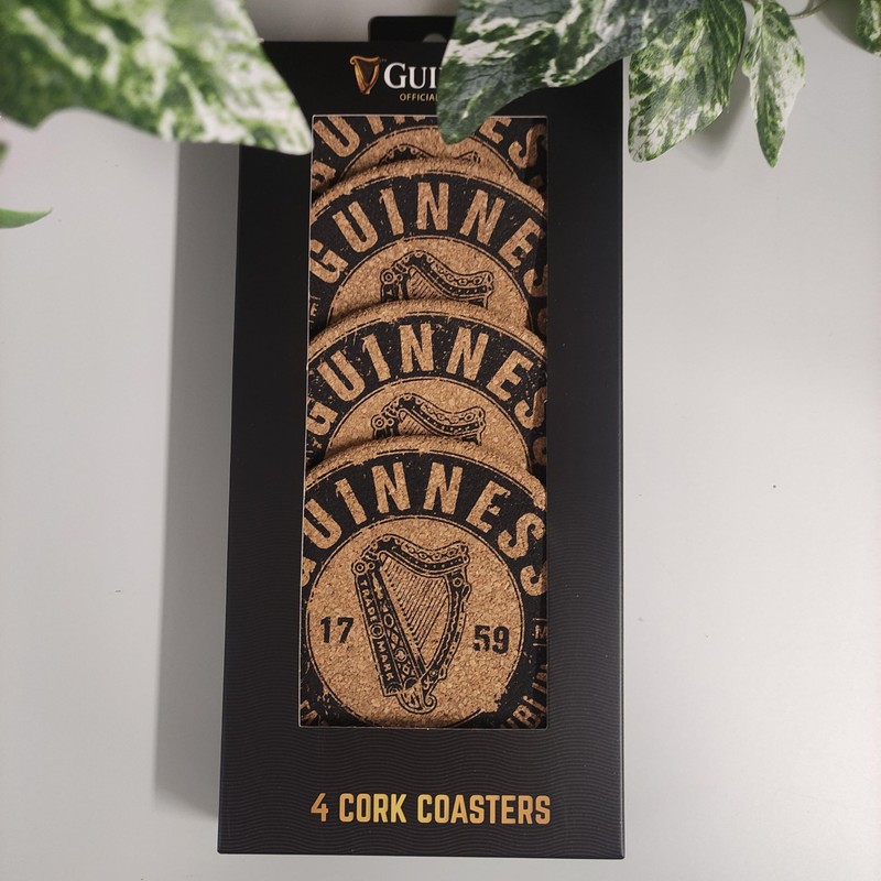 4 Pack Guinness Cork Coasters With 1759 St. James's Gate Harp Design,