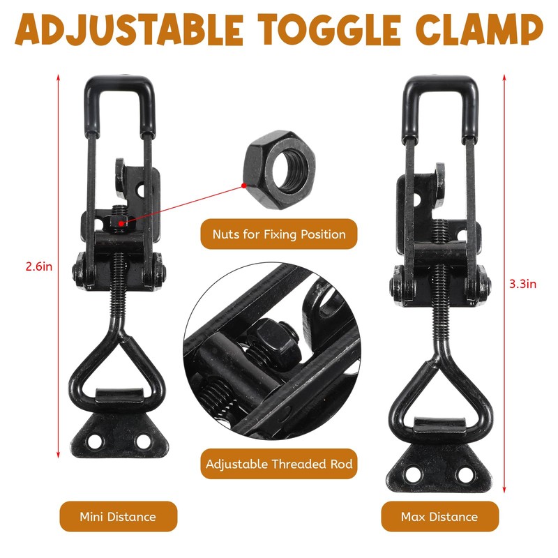 - WIDELY RANGE OF USAGE: Pull toggle clamps are widely used for cabinet, door, box, case with no lock or broken handles, perfectly fit for small tools in homes, offices, restaurants and factories, such as smoker box covers, jeep bumpers, sliding doors, tool boxes, making jigs, tool fixtures