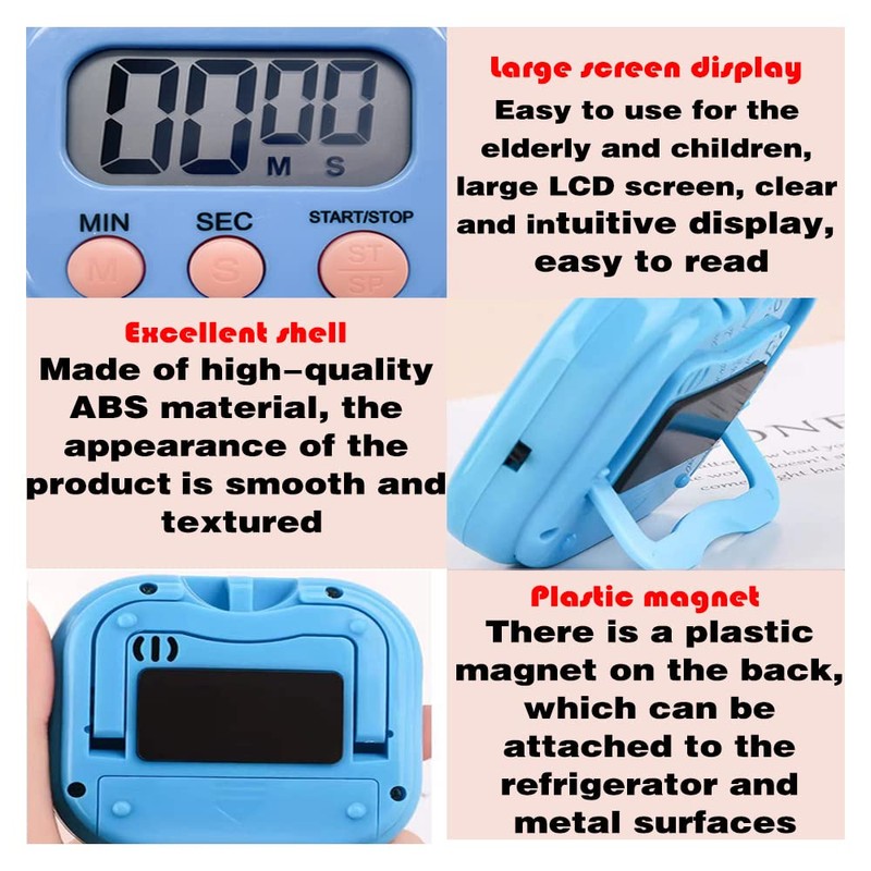 4 Pack Kitchen Timer, Multi Function Electronic Timer Simple Operation Large Display Loud Alarm for Kitchen, Study, Work, with Big Digits & Magnetic Backing(Blue,Green,Pink,White)